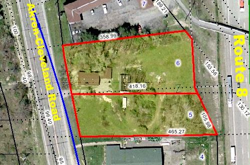This new location is currently owned by DMG Development Ltd of Hudson (charter #1082046), purchased on 25 January 2006 from First Street Properties LLC of Hudson for $145,000. The property consists of two parcels, parcel #1300398 and parcel #1300400 totalling about 1.36A. It is in the GB General Business district, with the Budget Inn to the north and Spa Palace to the south. A derelict house on the property was recently demolished with a practice burn by the Boston Heights Fire Department.